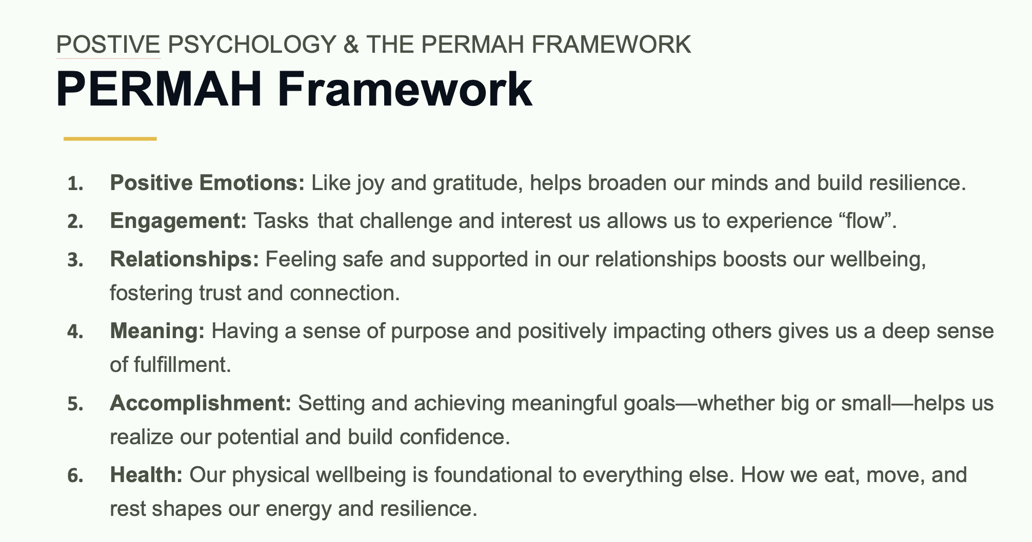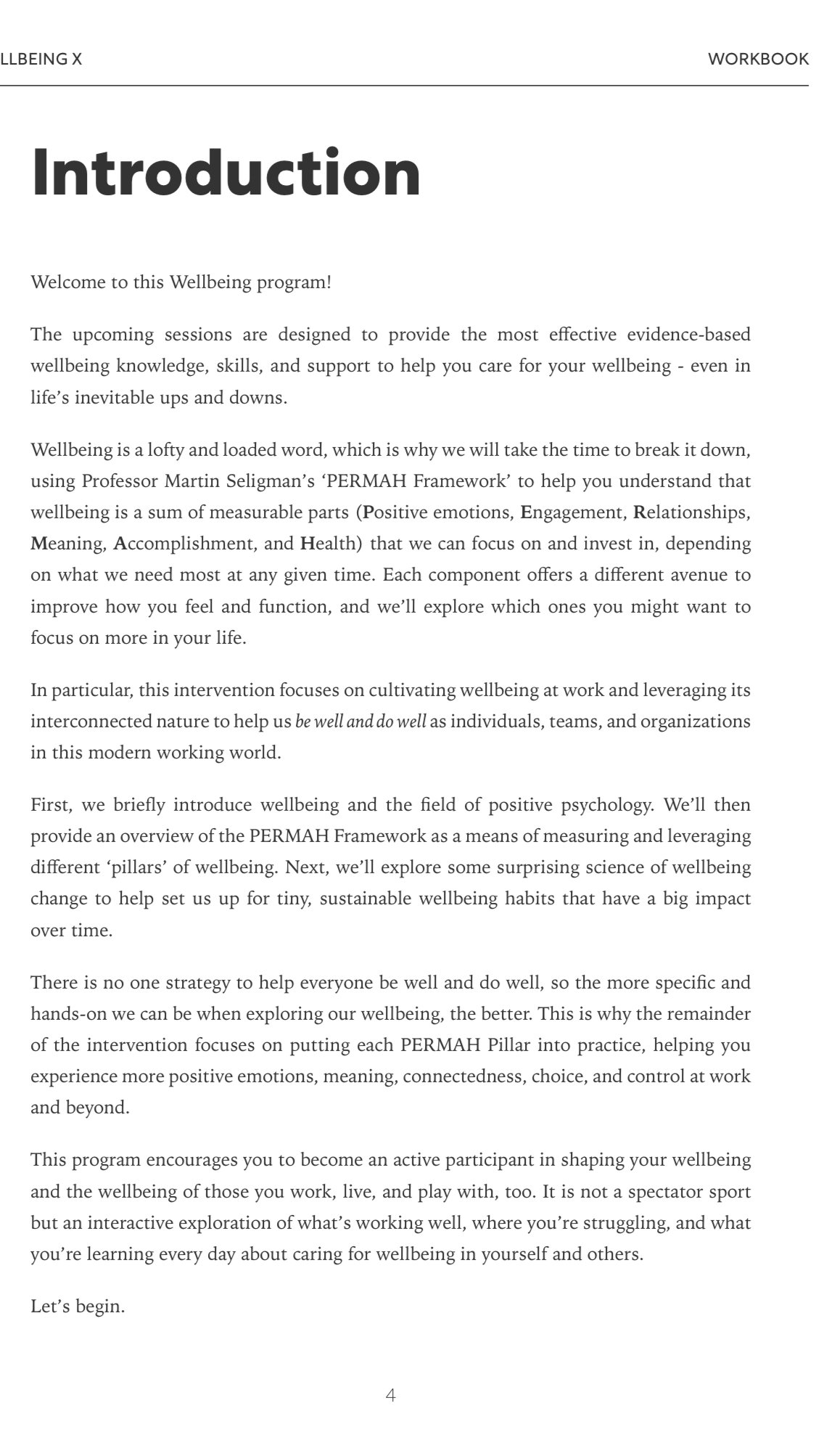 This Wellbeing program guides participants through seven impactful sessions to build a balanced, fulfilling life of more thriving work culture. Starting with Wellbeing 101, you'll explore foundational concepts, then move on to cultivate Healthy Habits, boost Positive Emotions, enhance Engagement, strengthen Relationships, find Meaning, and celebrate Accomplishments. Each session offers practical tools for lasting personal and professional growth.